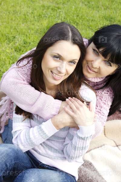 Портрет матери и дочери в парке на траве