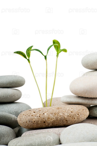 Зеленые ростки и камешки