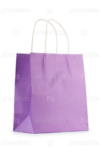Яркий бумажный пакет, изолированный на белом фоне