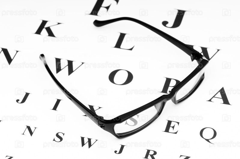 Очки и таблица для проверки зрения