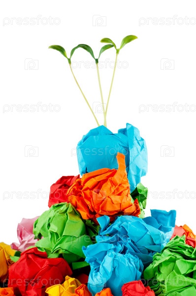 Зеленые саженцы, растущие из цветной бумаги