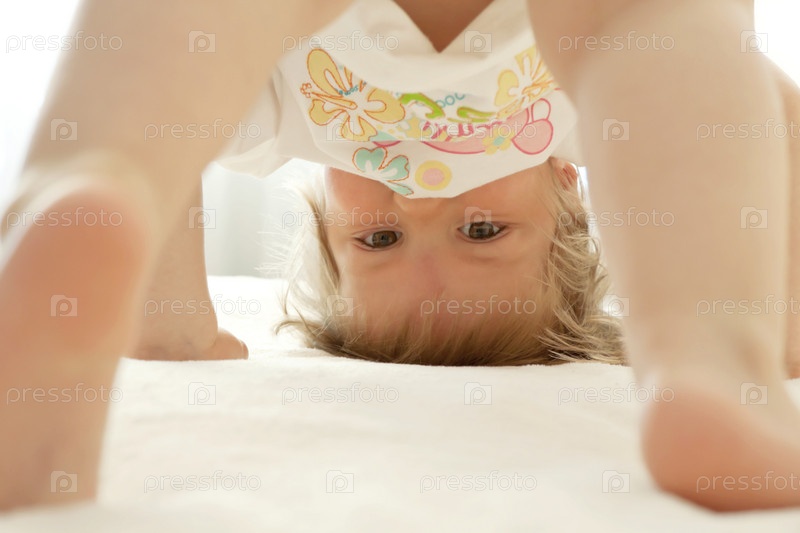 Маленький ребенок стоит на голове