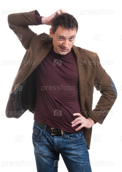 Мужчина почесывает голову