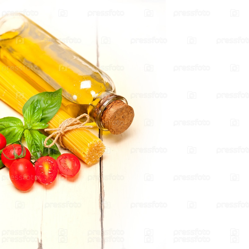Спагетти, помидоры и базилик
