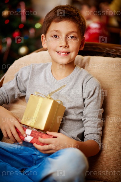 Мальчик с рождественскими подарками