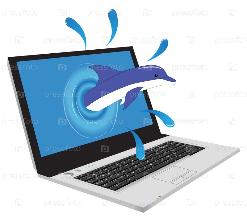 Дельфин и ноутбук