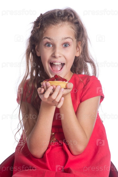 Девочка с десертом на белом фоне