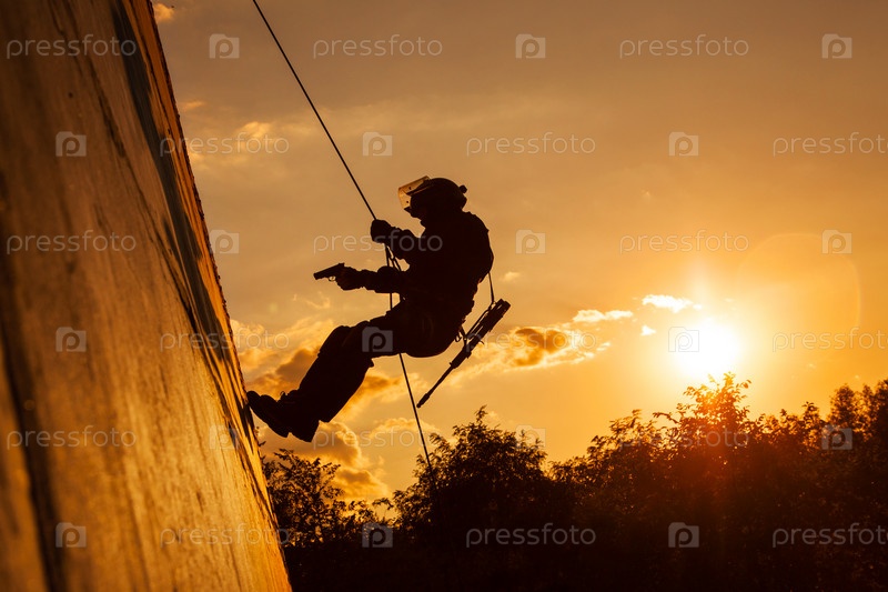 Солдат спускается по канату