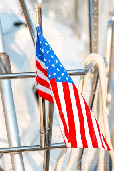 Развевающийся флаг Соединенных Штатов Америки на яхте