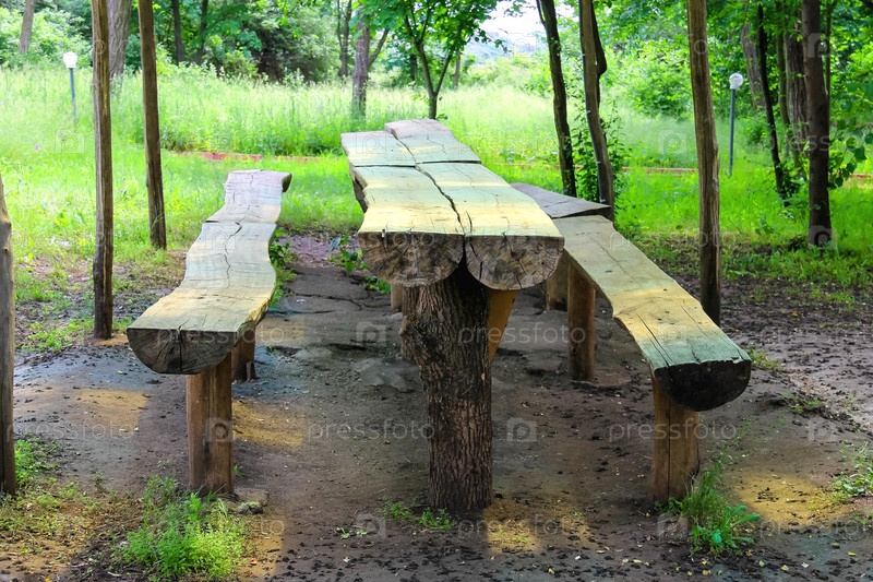 Стол и скамейки из бревен
