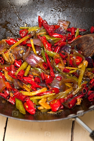 Жареные овощи с перцем чили