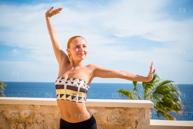 Красивая женщина занимается йогой
