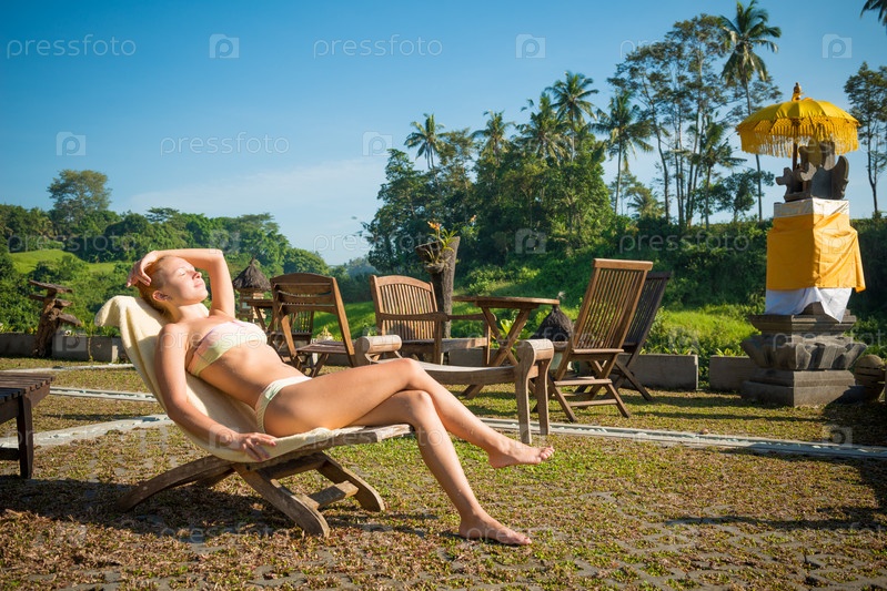 Женщина загорает