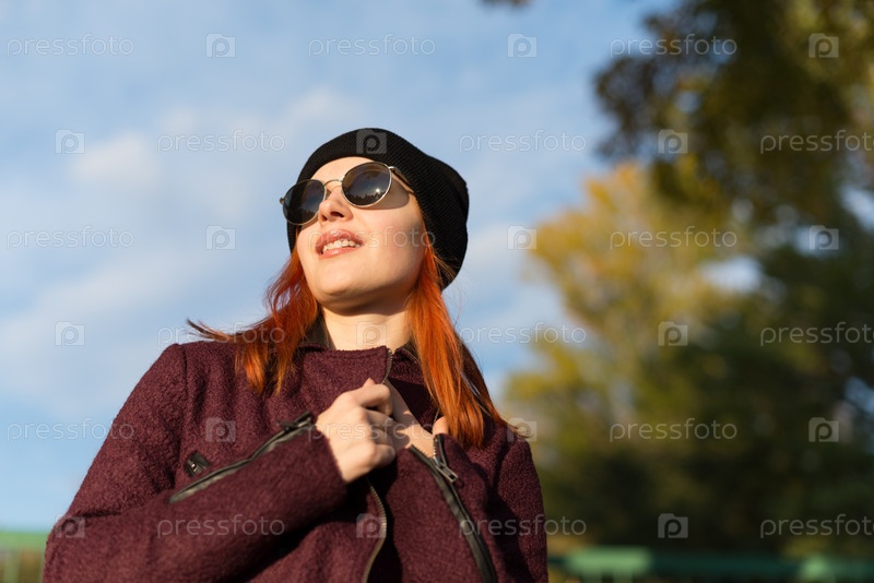 Модная женщина в осеннем парке
