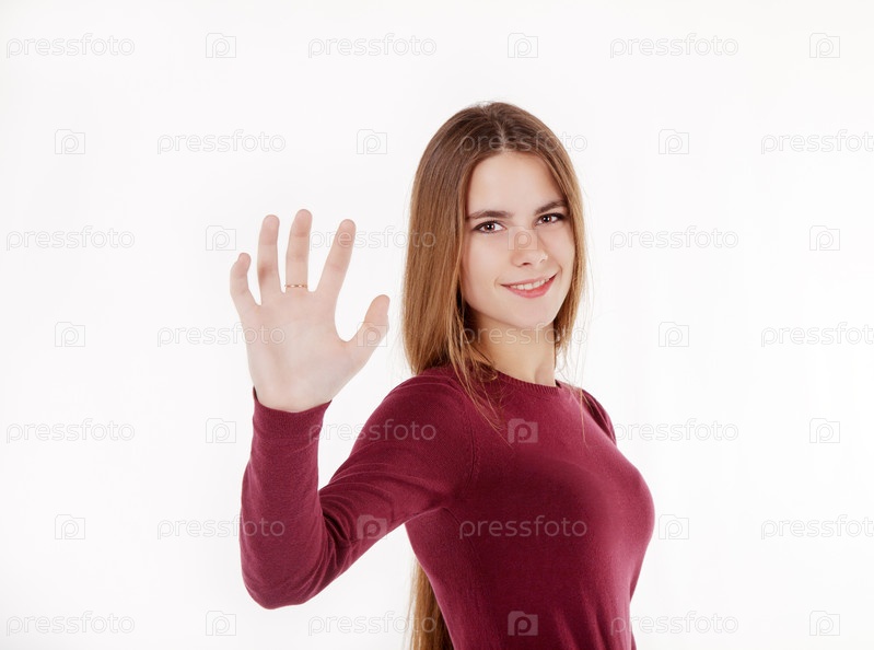 Красивая девушка что-то держит в руке