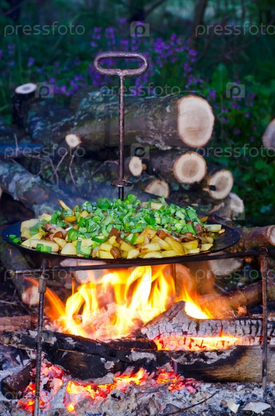 Картофель жарится на костре
