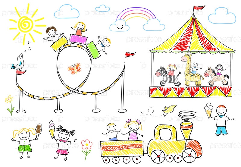 Дети катаются на карусели
