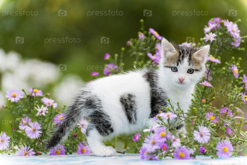 Котенок на фоне цветов
