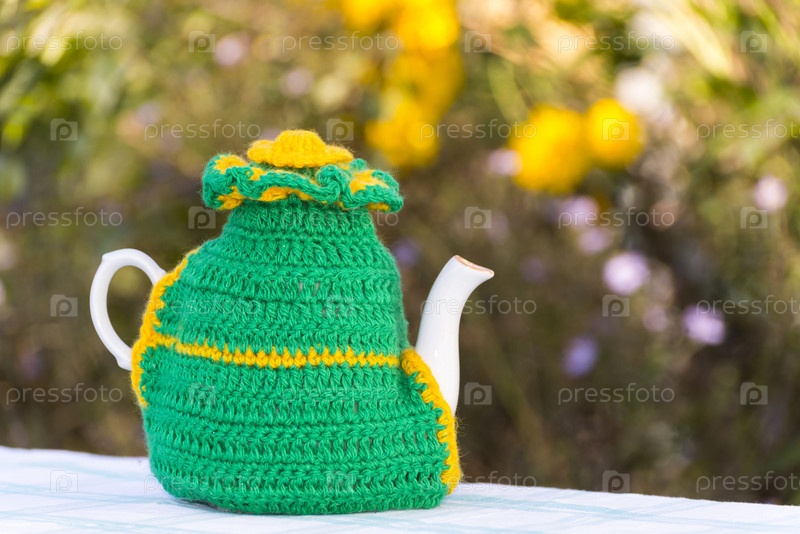 Вязаная салфетка на чайнике