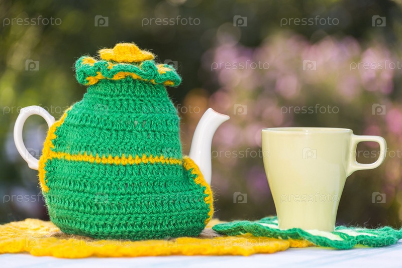 Вязаная салфетка на чайнике