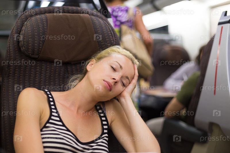 Женщина, дремлющая на поезде