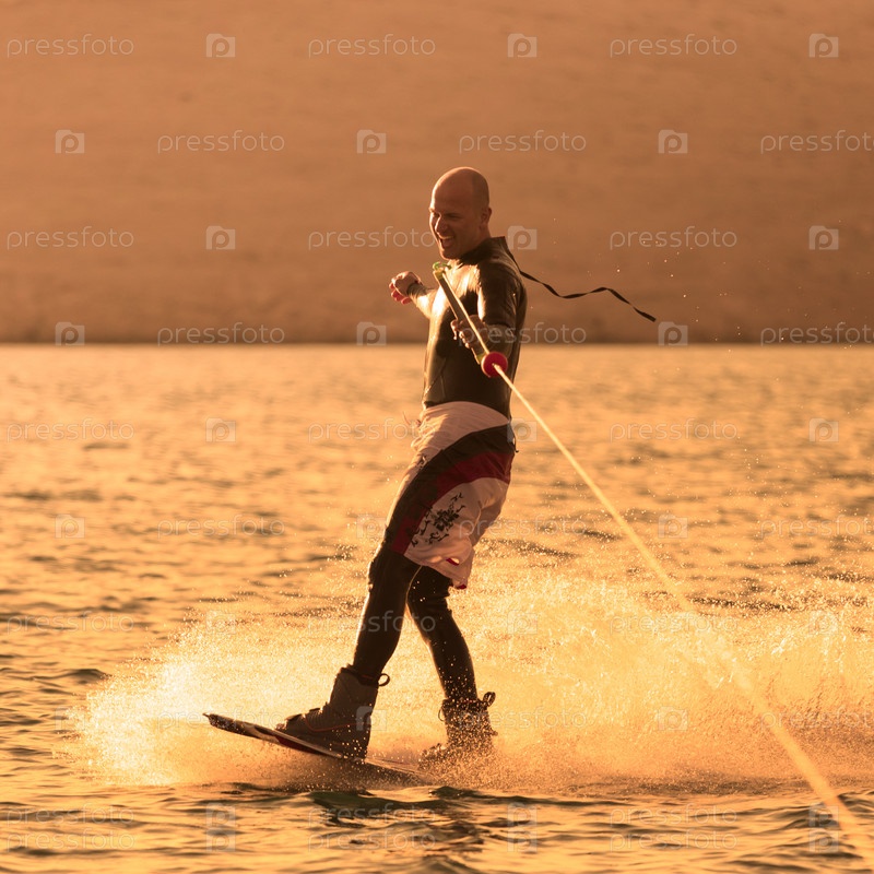Вейкбордер в море на закате