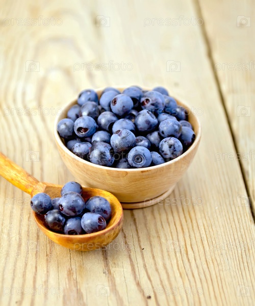 Черника в деревянной чаше и ложке