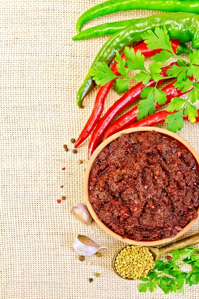 Аджика с острым перцем и пажитником на мешковине