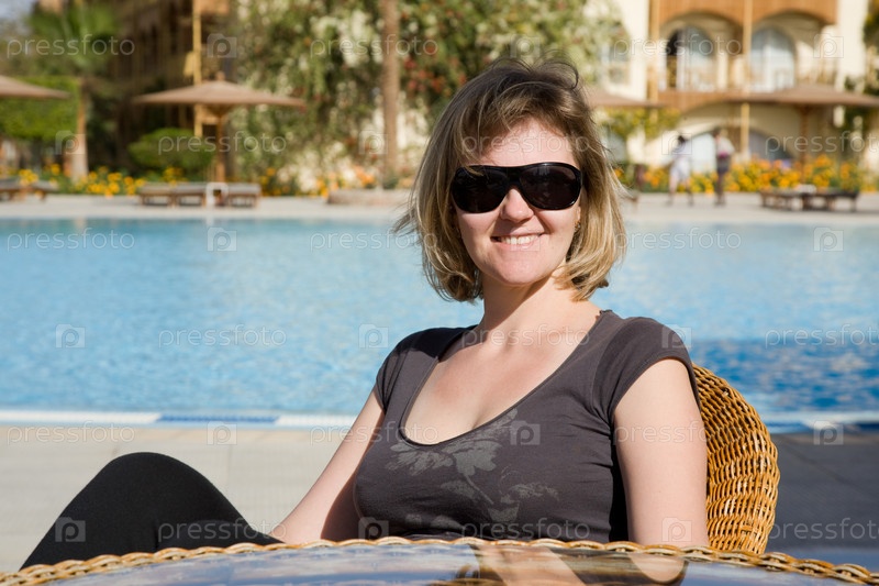 Молодая женщина у бассейна