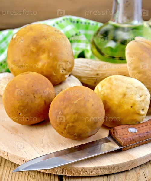 Белые грибы с ножом на доске