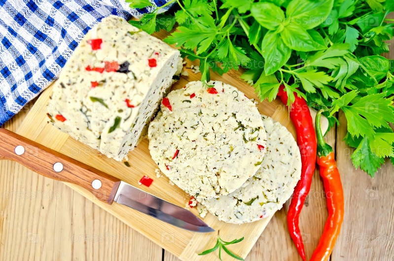 Самодельный сыр с острым перцем и салфеткой на доске