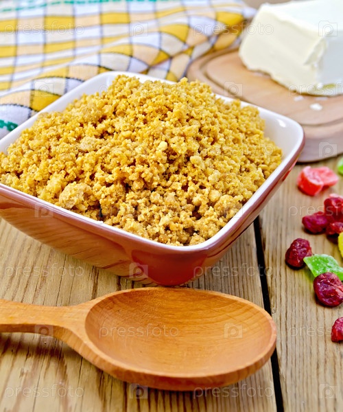 Красный творог с цукатами и ложкой