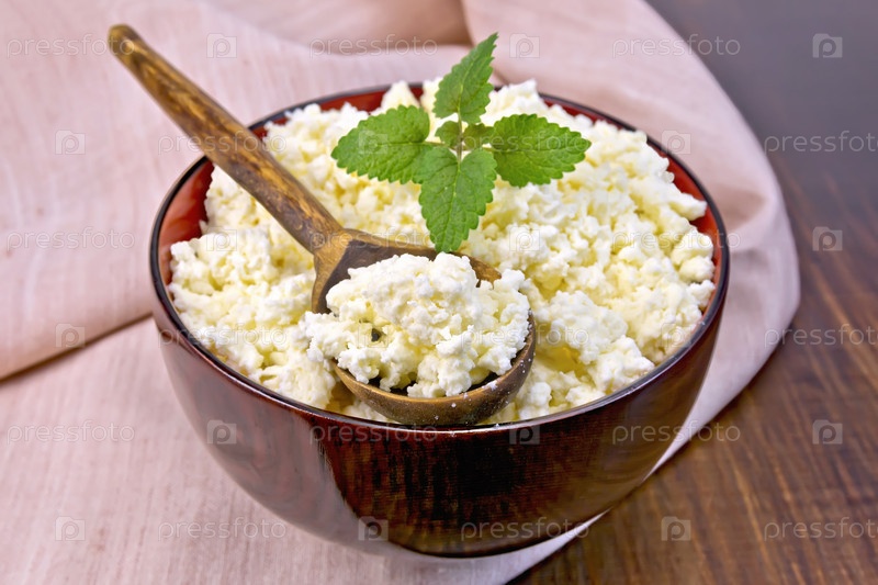 Творог в деревянной чаше с салфеткой