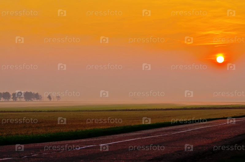 Рассвет над полем и дорогой