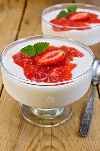 Молочный десерт с клубникой в креманке