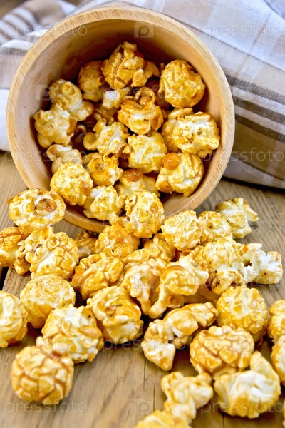 Карамельный попкорн в деревянной чаше