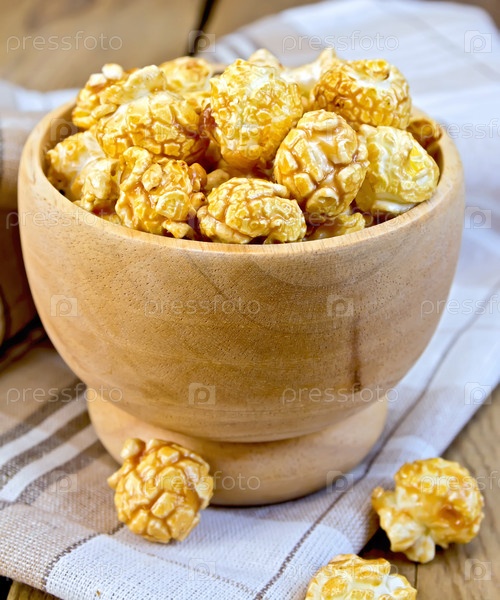 Карамельный попкорн в деревянной чаше