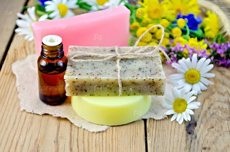 Мыло с маслом и полевыми цветами на столе
