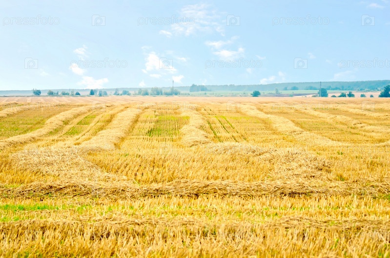 Солома лежит полосами на поле