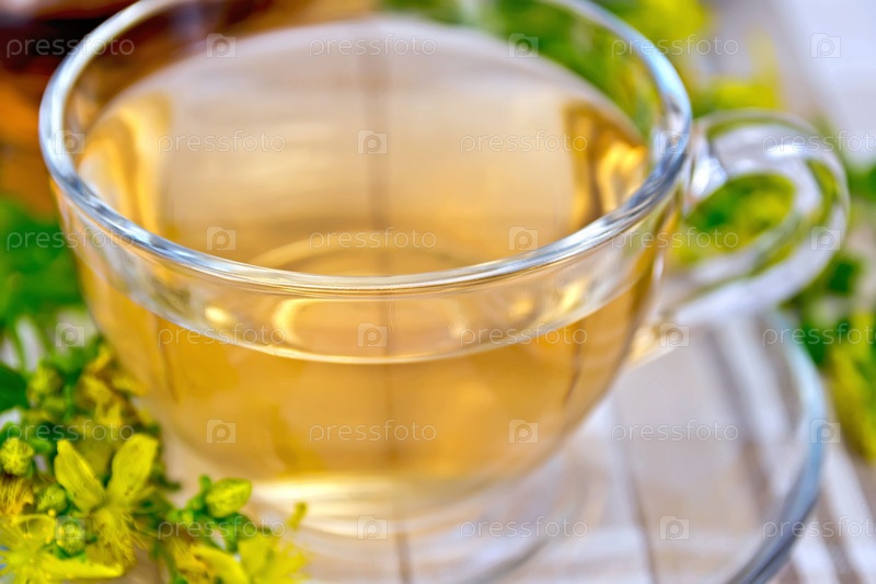 Чай со зверобоем в стеклянной чашке