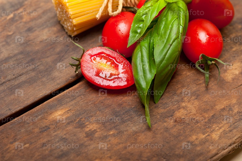 Итальянские спагетти с помидорами и базиликом