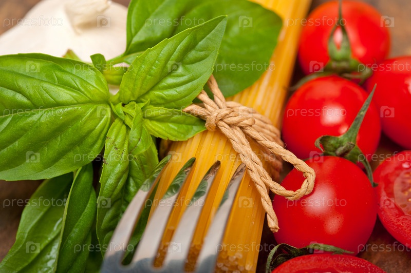 Итальянские спагетти с помидорами и базиликом