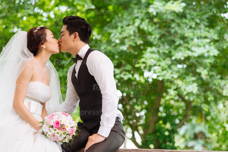 Целующиеся молодожены