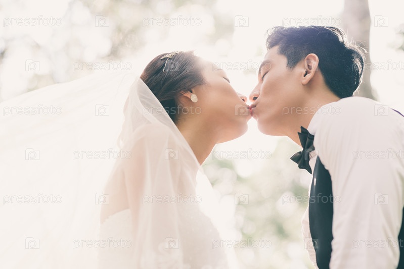 Целующиеся молодожены