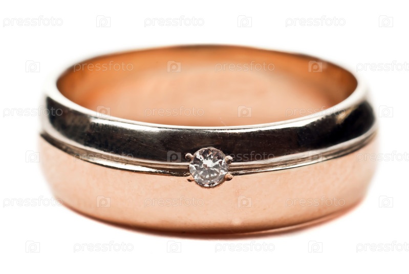 Золотое обручальное кольцо с бриллиантом крупным планом