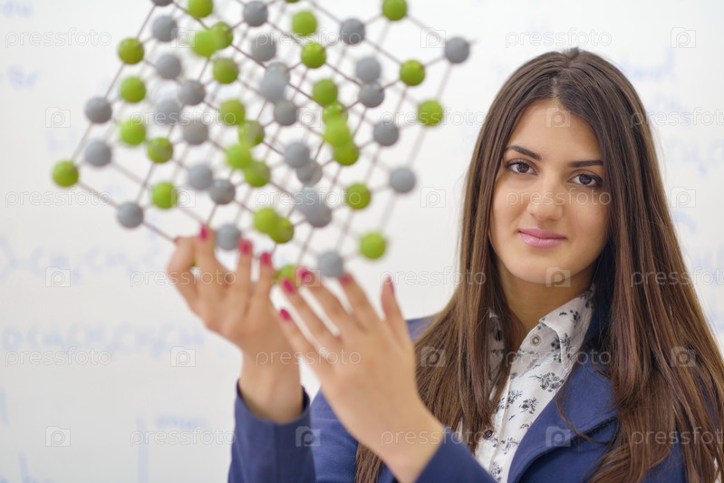 Школьница на уроке химии