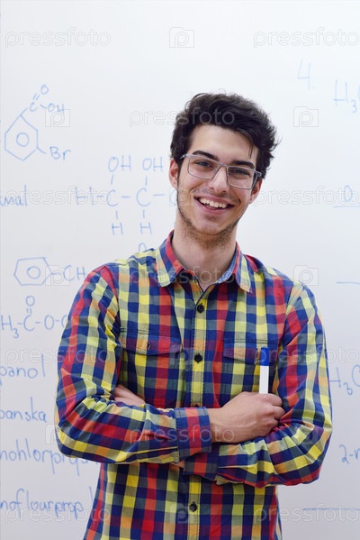 Студент в классе химии