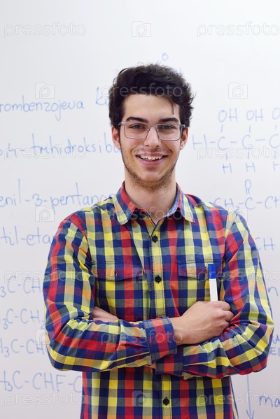 Студент в классе химии