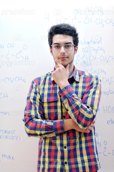 Студент в классе химии