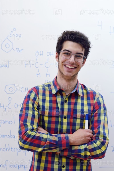 Студент в классе химии